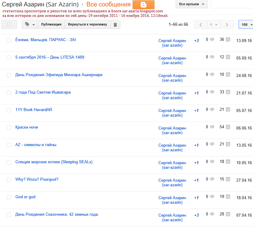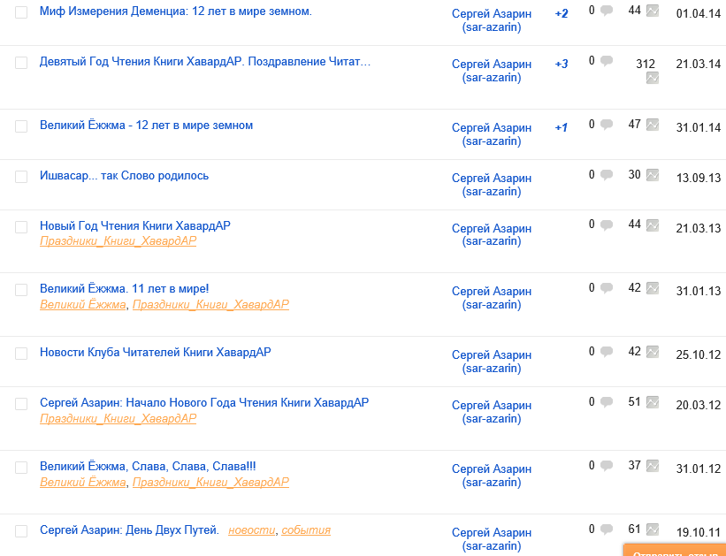 Перед тем, как опубликовать поздравительный текст к Празднику Двенадцати Лет Выбора Пути, решил собрать всю статистику по просмотрам блога за период с 19 октября 2011 по нынешний день. Здесь фиксирую статистику по каждой статье: |