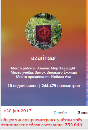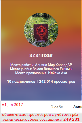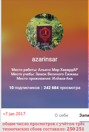 Статистика просмотров по состоянию на 6-7 января 2017, уровень 250 000 просмотров: