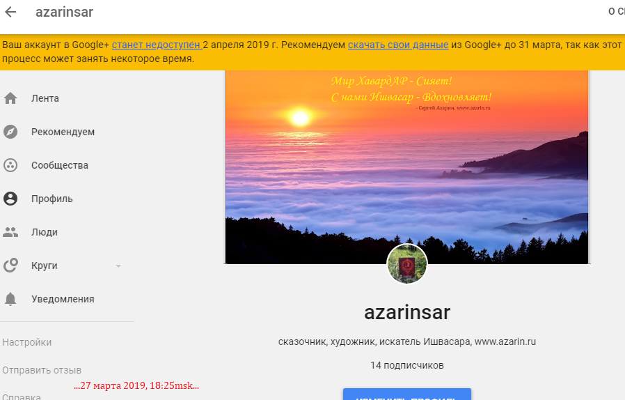 Вот и всё, компания Google закрывает все свои блоги. 1 февраля 2019 я получил предупреждение об официальном закрытии, которое состоится 2 апреля 2019. Мой блог, где я с октября 2013 года публиковал свои мысли, рисунки и прочие чудеса, будет закрыт, вся информация будет удалена, все ссылки перестанут работать. За это время я сделал 421 публикацию, где оставлял для всех желающих цитаты из Книги ХавардАР, из Книги Слов и Дней, или Книги Поэзии Мира ХавардАР, всё это сопровождалось специально подготовленными рисунками и фотографиями. Кроме этого я опубликовал 297 размышлений о фильмах. Последняя публикация была 31 января 2019 в День Рождения Великого Ёжжмы. Всего сделано 718 публикаций. Я сделал PrtScr-копии 424 публикаций, на память о пройденном пути, всё это можно увидеть в полном архиве на моём сайте. С февраля 2019 я продолжаю публикации, но в сети vk, там публикую размышления о новых фильмах и цитаты из Книги ХавардАР, даже успел опубликовать одну сказку. Жизнь продолжается...