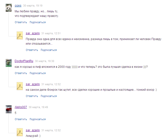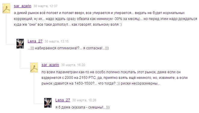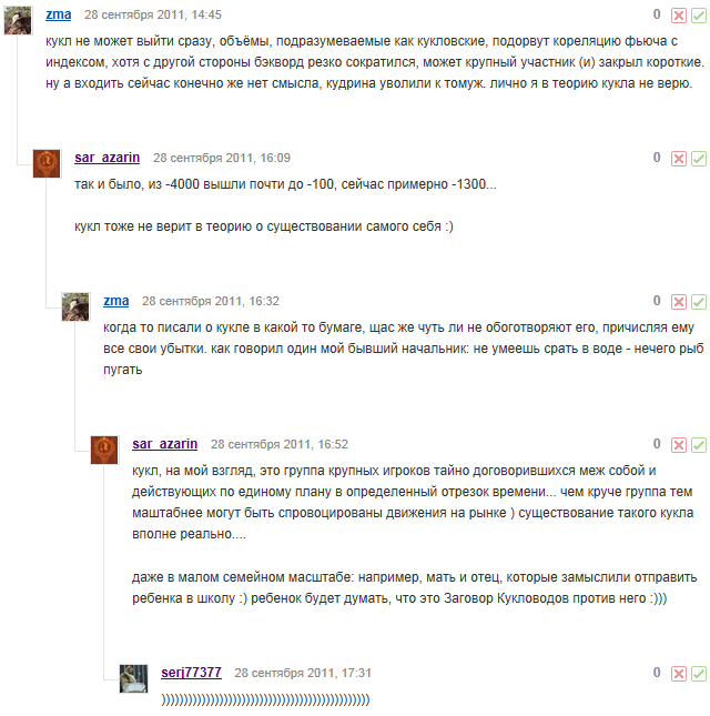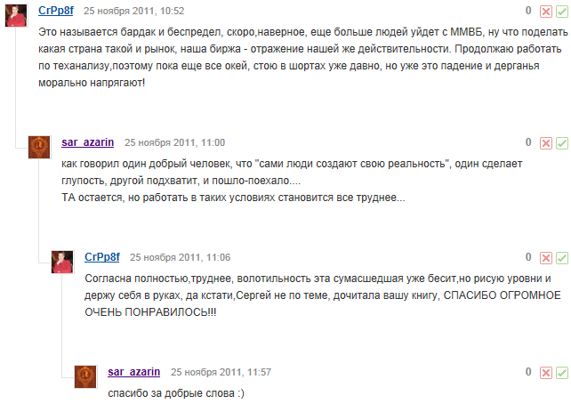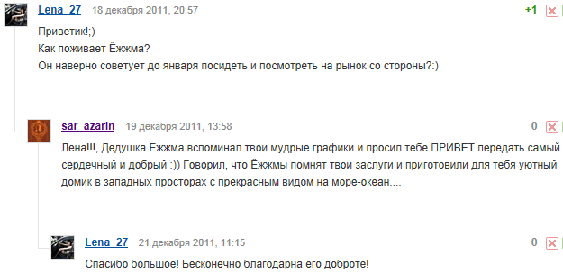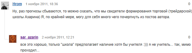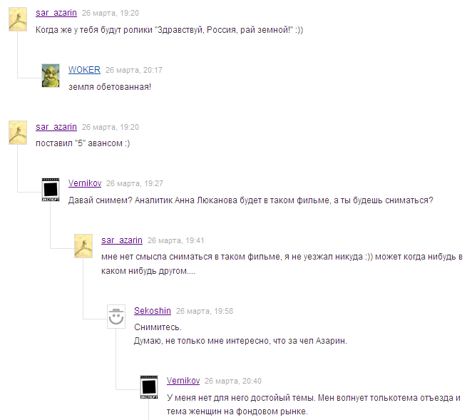 26 марта 2011, блог Андрея Верникова P.S. В ролике снимались аналитики и управляющие различных компаний из Москвы и независимые (Майя Яроцкая, Александра Лозовая, Андрей Есин, Александр Горчаков, Наталья Лесина и другие):