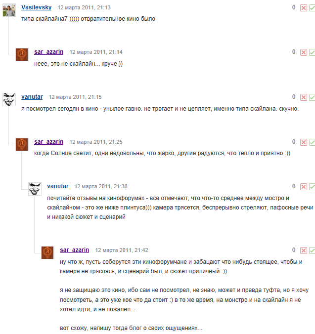 12 марта 2011, обсуждение новости о выходе в прокат фильма "Битва за Лос-Анджелес", после просмотра кинофильма я написал статью "Мой маленький морпех", можно прочитать здесь: