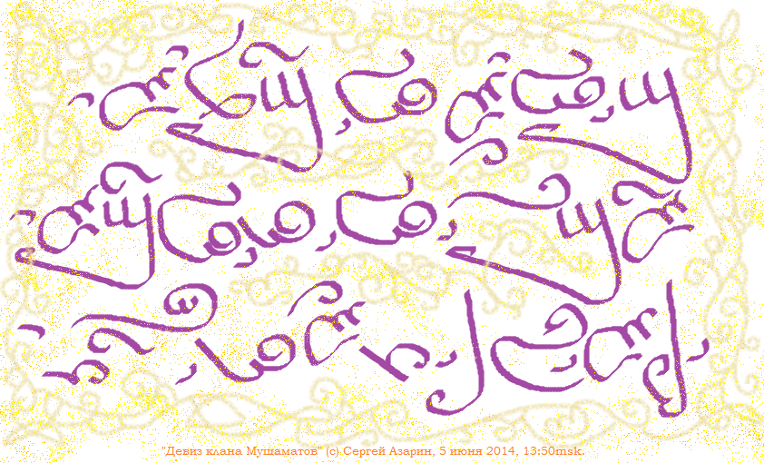 5 июня 2014 продолжил совершенствоваться в каллиграфии на языке клана Мушаматов, сегодня исполнил рисунок "Девиз клана Мушаматов":