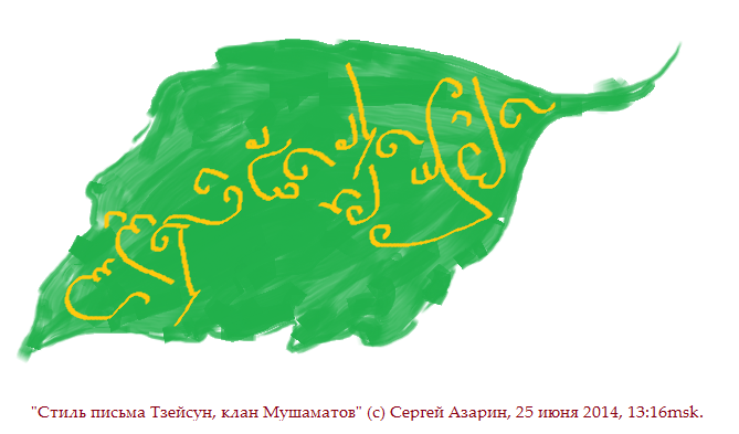 3 июня 2014 ещё один рисунок, каллиграфия на языке клана Мушаматов: