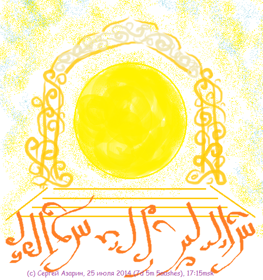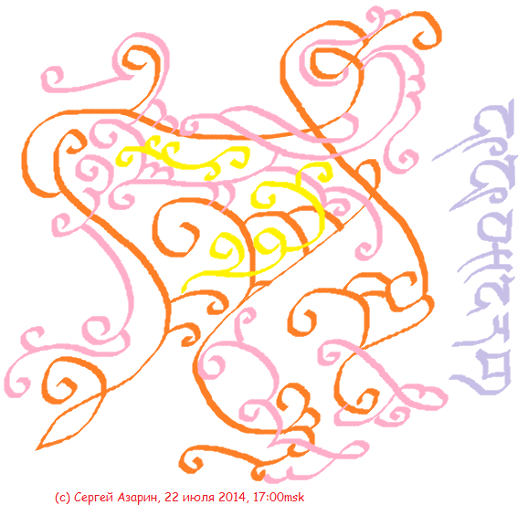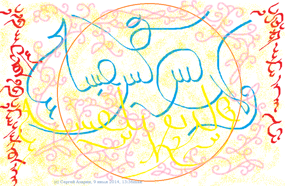 21 июля 2014 ...сегодня первый день распространения Книги "Под Светом Ишвасара", чтобы сделать объявление об этом прекрасном событии, сделал рисунок, каллиграфию алфавитом Савазат, текст посвящён событию, исполнение 12:38мск...: