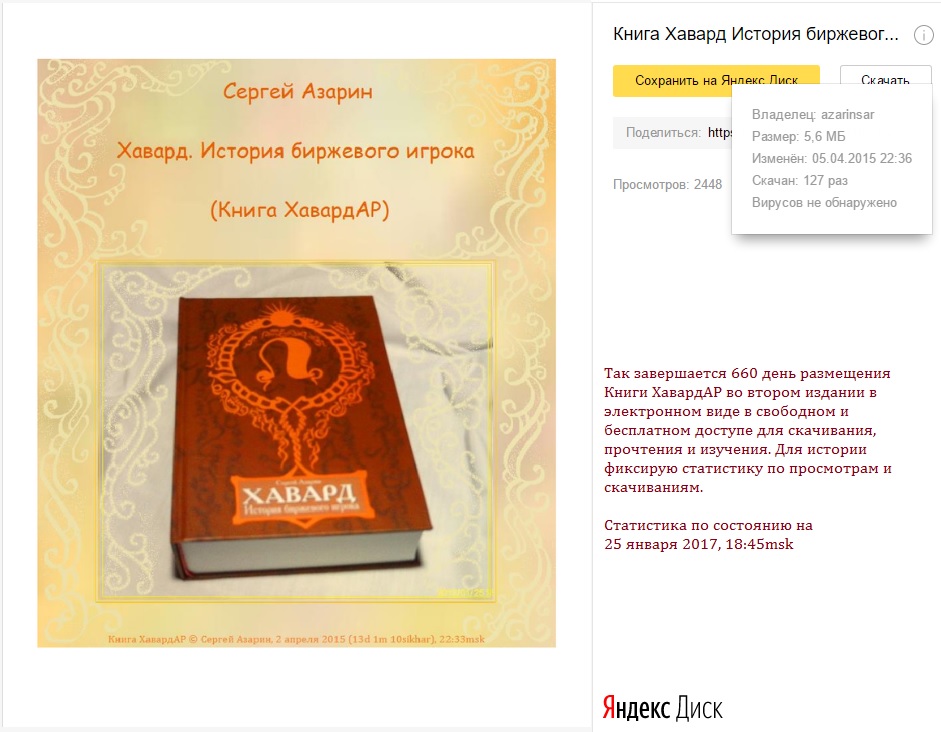 Так завершается 660 день размещения Книги ХавардАР во втором издании в электронном виде в свободном и бесплатном доступе для скачивания, прочтения и изучения.